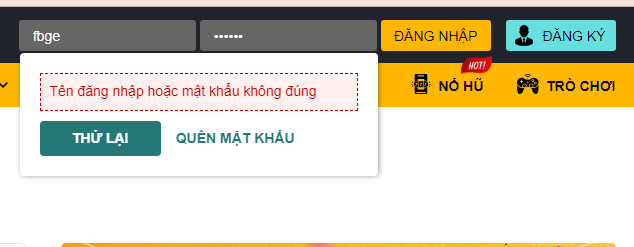 Thông tin đăng nhập phải trùng khớp, chính xác