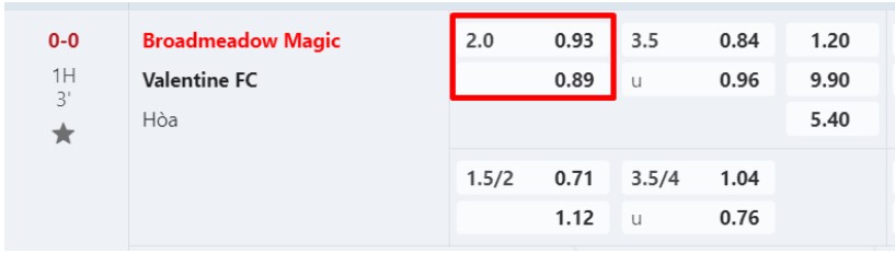 • Khi Broadmeadow Magic thắng Valentine FC từ 3 bàn thắng trở lên thì người cược đội chấp sẽ thắng kèo nhân với tỷ lệ thưởng 0.93. Còn bet thủ vào tiền cho đội cửa dưới sẽ thua toàn bộ số tiền đã cược.